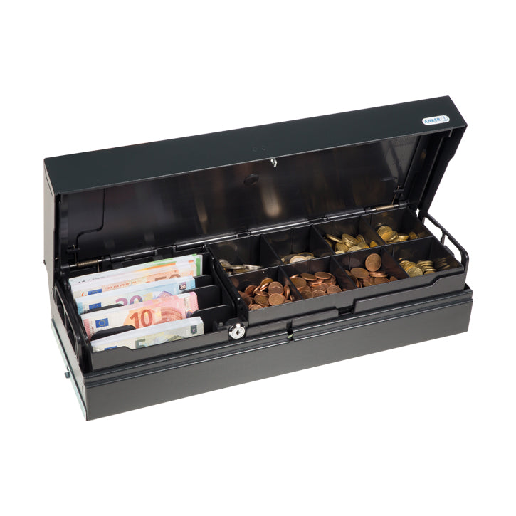 Even for those who prefer metal housings, we offer the ANKER Universal Cash Cassette UCC, an alternative that remains true to the ANKER principle. The outer case is mounted in the proven manner on a base plate. This allows for easy disassembly. Unlike our plastic cassettes, this can continue to be used unchanged. The base is supplied without any electronics, as these are installed in the outer housing of the cash cassette. This means that the outer housing can also be installed without the base if desired. The UCC is opened directly electronically by the cash register system.
