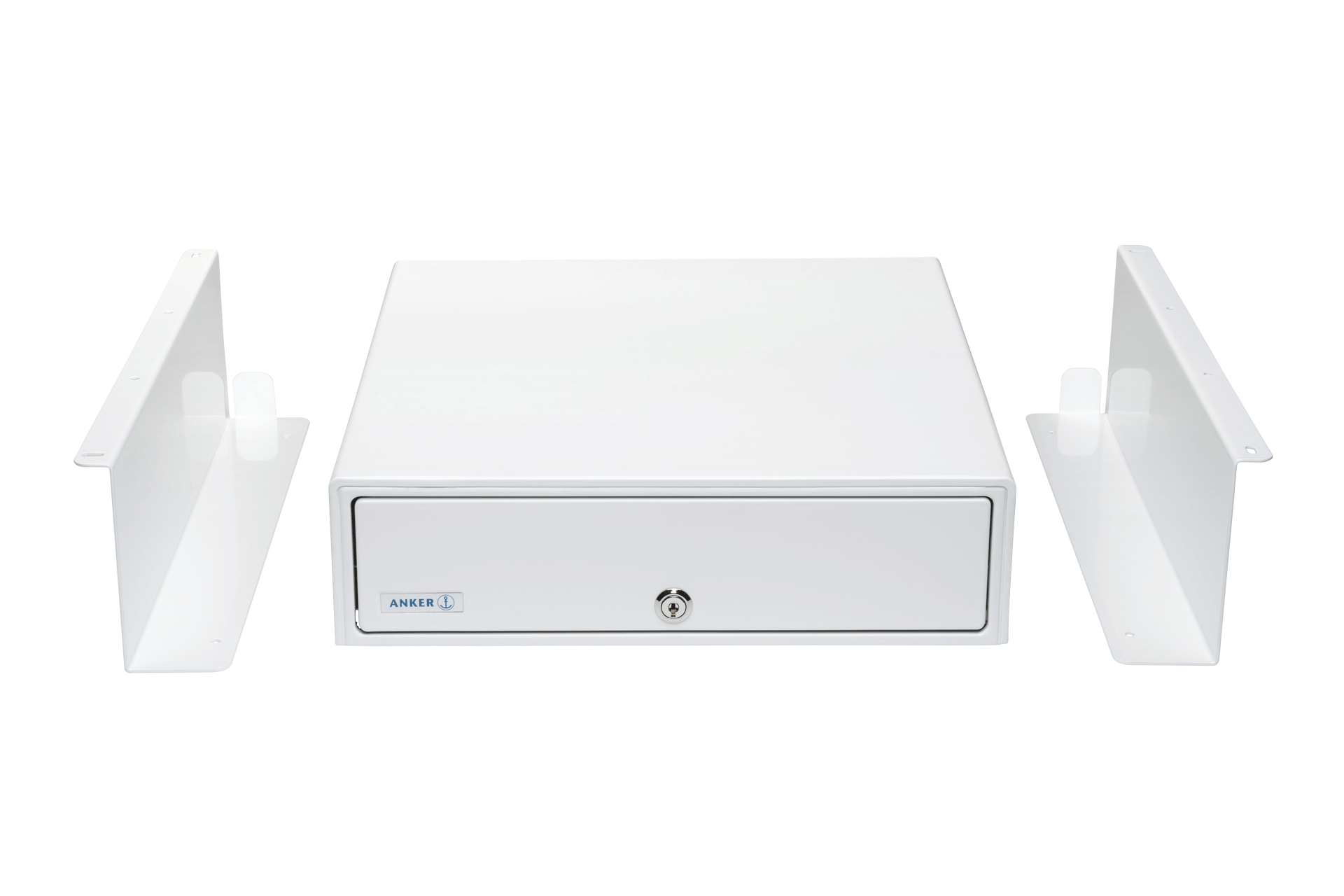 Difficult installation conditions quickly solved. While a new cash desk is already prepared by the manufacturer for the installation of your desired drawer, it can happen with cash desk conversions that the desk is not suitable for the installation of a cash drawer. This is where the retaining brackets for the ANKER cash drawers provide a remedy. They ensure a firm hold and permanently secure mounting of your cash drawer when it is mounted under the table. Suitable for the following models:- MDX 13 / MDX 13E / MDX 13E Push